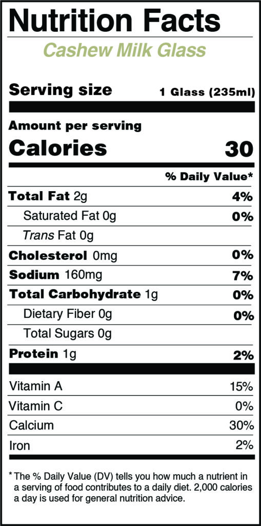 Krim kelapa, sirup gula merah, tepung singkong, air jeruk nipis, oat gulung, minyak kelapa, kacang mete, tepung jagung, gula tebu & ekstrak vanila