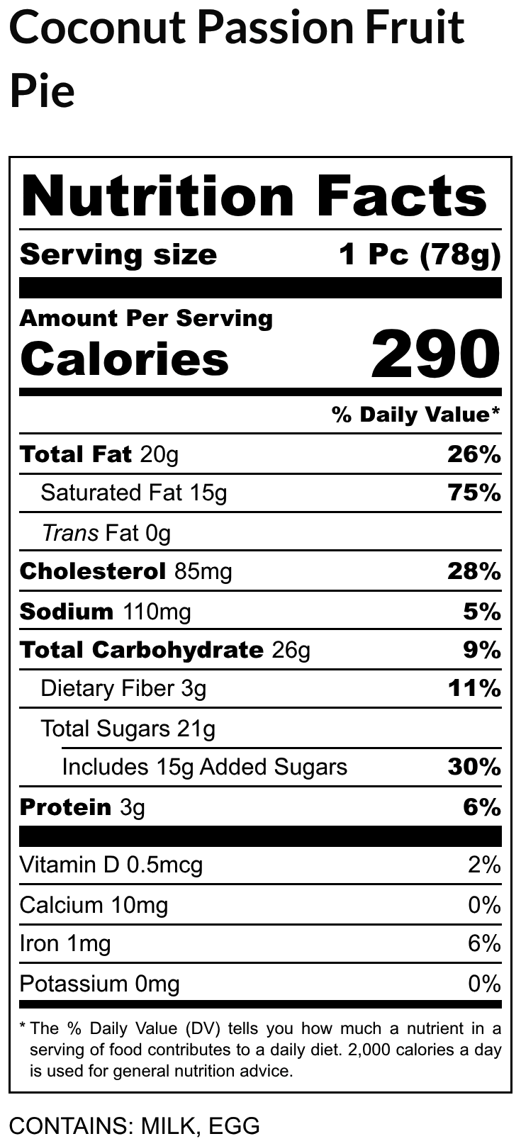 Whether you’re enjoying it on a hot summer day or wanting a bit of tropical sunshine in the cooler months, our gluten-free coconut passion fruit pie brings a slice of paradise to your table. Pair it with a scoop of vanilla ice cream, a drizzle of caramel, or enjoy it as is—this pie is a delicious treat no matter how you serve it.