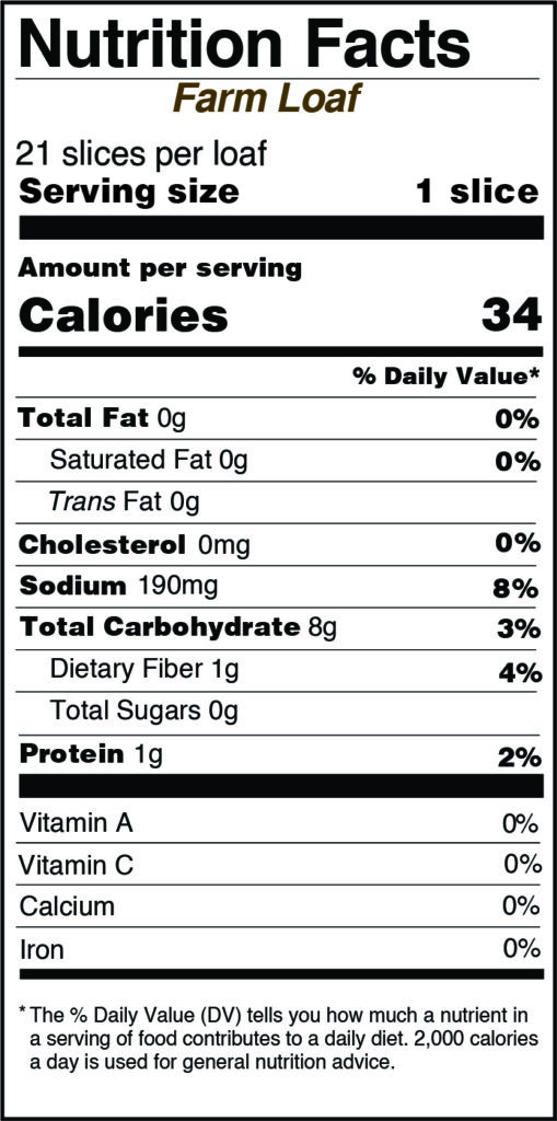 Roti farm kami sangat cocok untuk orang yang menyukai roti yang lebih gelap yang mengandung campuran tepung gandum dan gandum hitam. Roti ini rendah kalori dan memiliki kadar gluten yang lebih rendah dengan tekstur yang lebih padat, kenyal serta bercita rasa malt yang ringan dan lezat. Nikmati dengan selai olahan rumah, selai kacang, maupun cocolan buatan kami. Atau bisa disajikan sebagai pendamping sup-sup kami yang lezat juga. Bisa dijadikan sandwich maupun roti bakar.