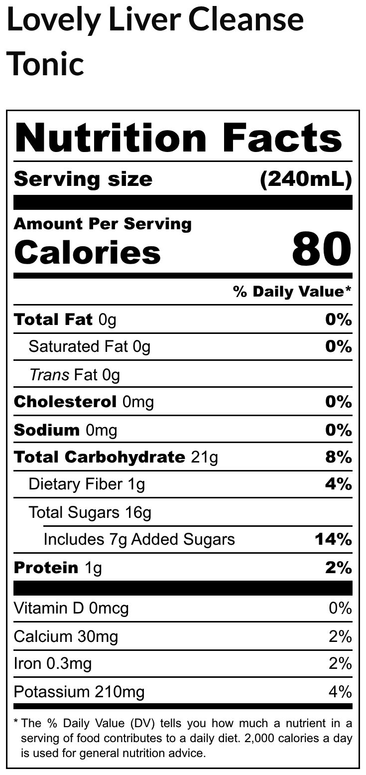 Our Lovely Liver Cleanse is a refreshing and revitalizing homemade tonic crafted with a blend of natural ingredients designed to support your liver’s health and overall well-being. Every sip of this drink is packed with a mix of fruits, spices, and natural sweeteners that not only taste delicious but also work synergistically to detoxify and rejuvenate your body.